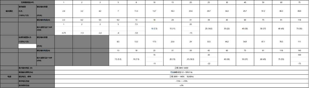 *2. 335HP如用到440V需降額使用,具體參考說明書。